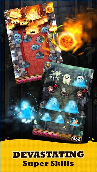 2、无间断点爆史莱姆,累积每10 combo就能召唤魔法石,触发全屏冰火魔法: