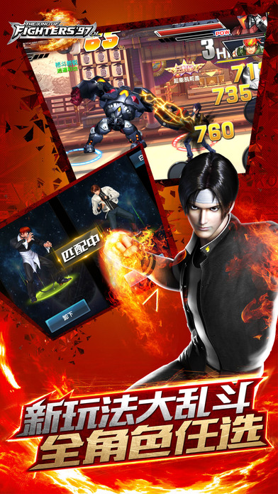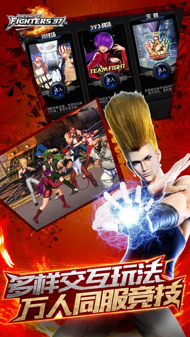 游戏由日本SNK正版授权,并全程参与监修,高度还原“拳皇”系列精髓。数十位拳皇角色轮番登场,人物、招式、音效全部还原《拳皇97》,唤醒童年热血情怀