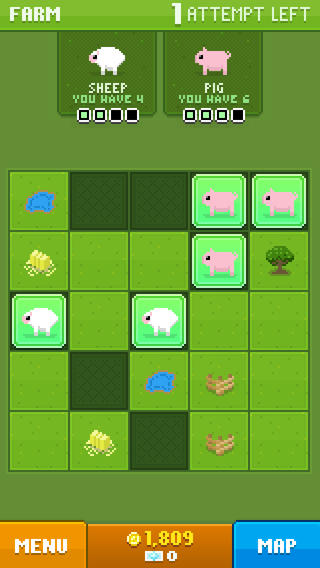 每种动物的碎片都有固定的形状,比如兔子是一字型、猪是田字型、袋鼠是对角线型、河马是大号的田字等等,这是找齐关键。每进行一次寻找都需要花费一定数量的金币,并且不断递增,只要花费几百,就上千,而且花了钱还不能保证收获,每次游戏都有尝试次数(Attempts)的限制。用完所有次数还找不齐动物的话,就需要看广告或者花 DISCOBUX才能进行更多尝试……规则虽然简单,然而拯救之旅当然不会局限于热气球与农场。随着飞行器的升级,脚步将遍布内陆、草原、冰川、雨林,甚至前往侏罗纪公园。游戏共有七个场景,每个场景提供三种普通动物、两种稀有动物以及一种神秘动物(比如独角兽、狮鹫、野人等),计四十二种。