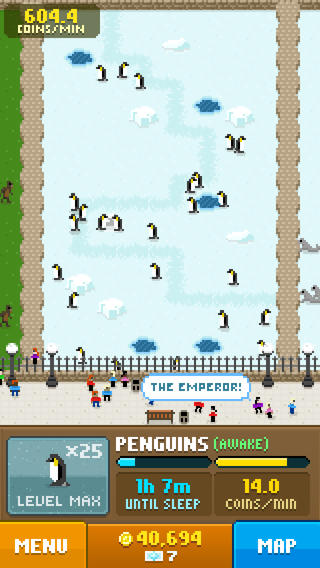 救到动物后,动物园就会为每一种动物都建造一个场地,随着游戏的进行,眼见小小的动物园越建越大,成为中型、大型、超大型动物园,喜悦和成就感不言而喻。每只萌萌的小动物都会带给我们收入,但需要休息,一旦睡着了就无法再盈利,直到你将其唤醒,这就迫使你没事儿的时候打开游戏点两下。而且每种动物的工作时间都是不一样的,随着同一种类型动物数量增加,还会升级,通过升级赚到的金币会增多,根据动物的稀有程度,动物们的等级上限也各不相同,将一种动物升至满级也会获得奖励。值得注意的是,神秘动物的工作时间是其他动物的数倍甚至更多,简直是天生的赚钱机器。不过这非常正常,现实世界中如果有哪家动物园能展出独角兽、狮鹫什么的,钱不要太好挣啊。总之,营救动物,在动物园展出,人们交钱观光,获得收入,扩建动物园,升级飞行器,去营救更多动物,挣更多钱……就是这样一个循环。