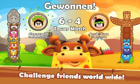 《动物图腾塔 Totem Tower》是一款非常考验脑力的休闲类游戏,而且这是一款可以双人对战的游戏哦。游戏的背景是两个战场和两根图腾柱,你需要做的是快人一步在战场上找到重复的动物,并决定是把它放置到自己的图腾柱上还是扔到对方的场地。值得一提的是,每个小动物的重量都不相同,如果在图腾柱上放置的动物比底层的动物重,就会把底下的小动物压碎!首先在图腾柱中堆叠六个动物的一方将会取得胜利。游戏画面精致可爱,玩法新颖有趣,乃居家旅行必备佳游!