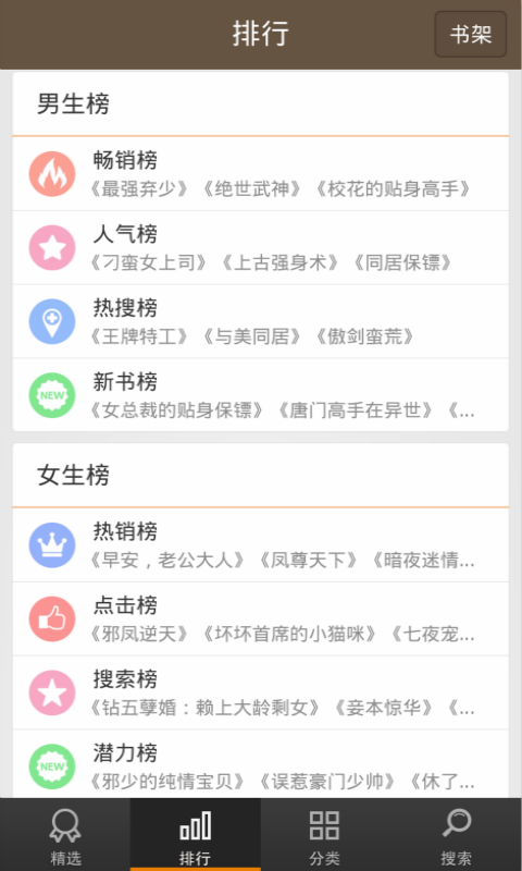 极品小说安卓版是一款应用于安卓平台的免费看小说软件,软件绿色无广告,完全免费,你可以轻松查找自己喜爱的小说,或在线阅读,或直接下载!更新快,目录多,你想要的小说都在这里!