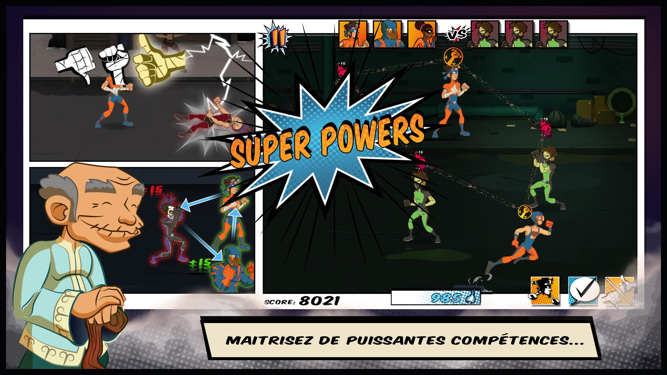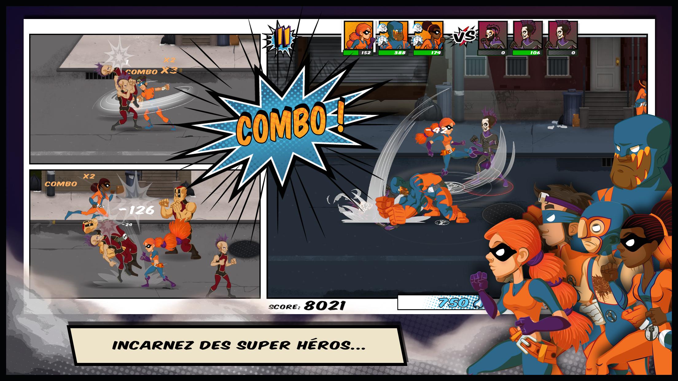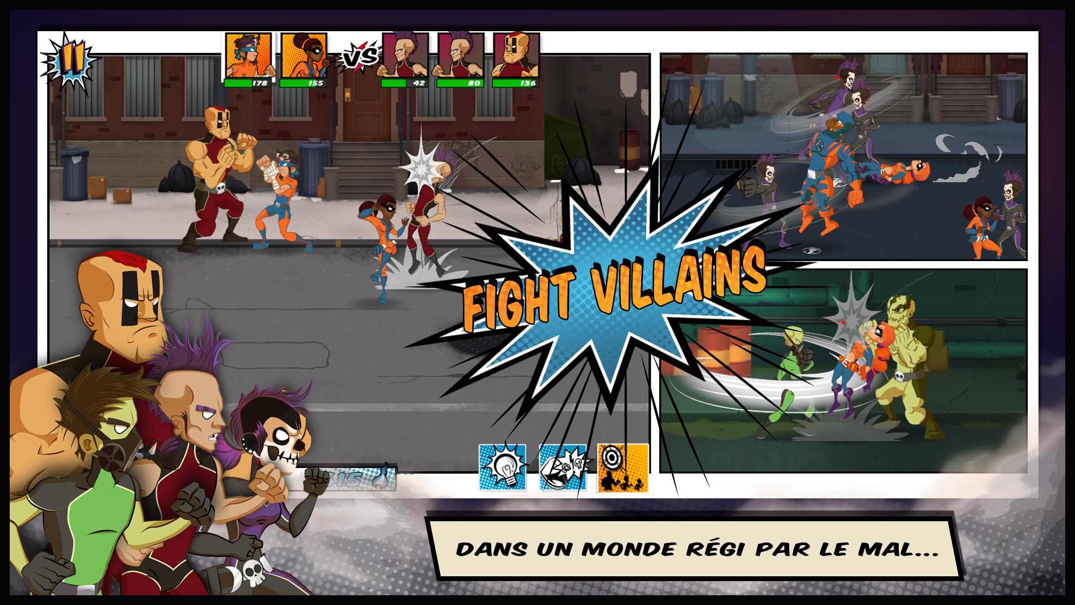 《超级英雄(Soft Skillers)》是开发的一款动作类游戏。游戏类似真人快打的战斗经典,打败喜欢犯罪的BOSS,成为超级英雄!争取用手指轻触你的敌人触发连招,秒杀敌人。带领你的超级英雄团队。