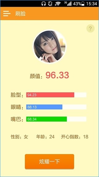刷脸app安卓版是一款测试用户长相值的手机应用。通过该软件,用户们只需要上传一张自己的面部图片,经过软件的测试分析,会有各种颜值数据公布,还可以测试相似度哦,欢迎下载体验!