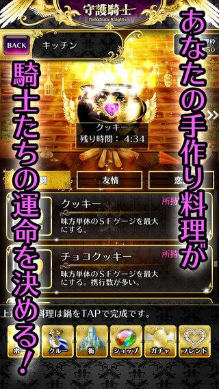 守护骑士是一款融合了恋爱与王道RPG的游戏,玩家通过简单操作即可体验在冒险世界中的乐趣,在冒险中入手食料以及用于强化素材的料理,打造属于自己独一无二的武器。