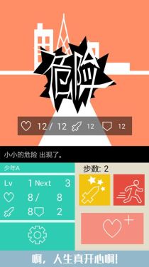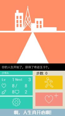 《名为人生的RPG》是一款以人生为蓝本的RPG类手机游戏,以走完1000步为目标,在轨道上一直走下去吧。打倒「小小的不安」「危险」「死」等人生中可能遇到的敌人,以才能为武器战斗下去吧!