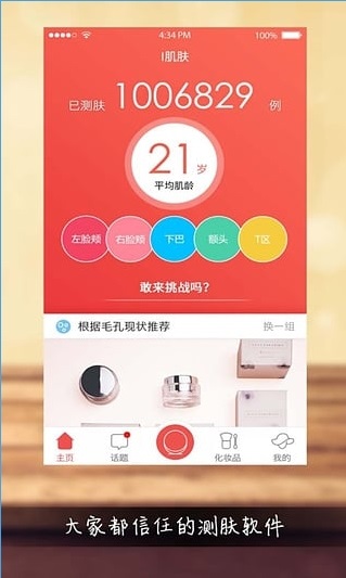 1、一款女性皮肤测试和化妆品推荐的app;