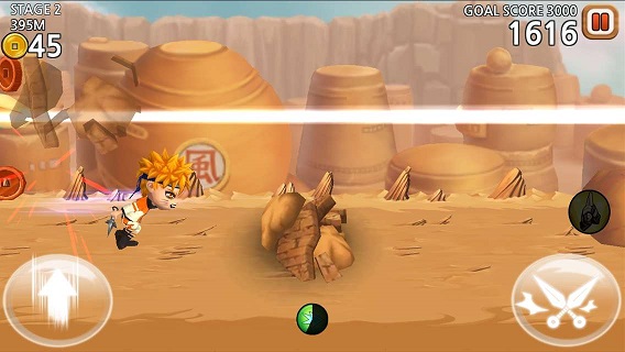 《终极之战:忍者狂奔 Ultimate Battle: Ninja Dash》是一款动作跑酷游戏,玩家在游戏中可以选择 漩涡鸣人,春野樱,宇智波佐助,旗木卡卡西等几位忍者来进行游戏,每个忍者所拥有的技能都不一样,解锁技能需要将人物升级。游戏的玩法很简单,就简单的跳跃和攻击按键,途中可以收集金币,各种道具等。游戏画面还是不错的,值得玩家去试一试。