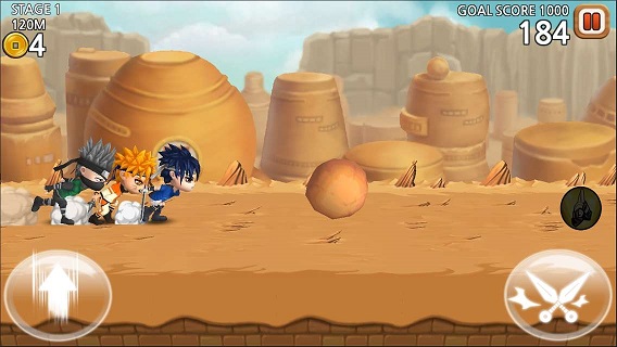 终极之战:忍者狂奔是一款以火影忍者为题材的横版跑酷手游,游戏中玩家可以同时操纵3个人进行跑酷,收集金币,跨越障碍,更有众多敌人等你来消灭,你能成为最强的忍者吗?
