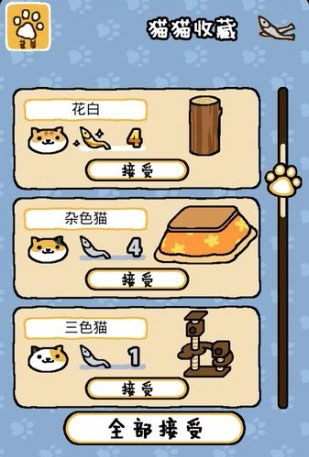游戏我只想说简直!太!可!爱!啦! 画风简约呆萌而且这个软件并不很大…并没有什么剧情,偏说有的话就是作为一个无可救药的猫奴偷将自己家后院献给了无上的猫咪大人,猫咪们在你的游戏设施上玩了个爽之后会给你小银鱼或者小金鱼,接着又可以买新的设施来吸引新的猫咪,游戏到了后期攒够了小金鱼以后可以拓展房间,而且可爱的猫猫们还会送礼物给你!猫咪门玩儿设施的样子简直了qwq她[舔屏]咳咳,说来,十分推荐,无论你是不是猫奴,或者是怪大叔,或者是萌萝莉,相信你都会爱上这款萌到不行的游[mao]戏[mi]的!