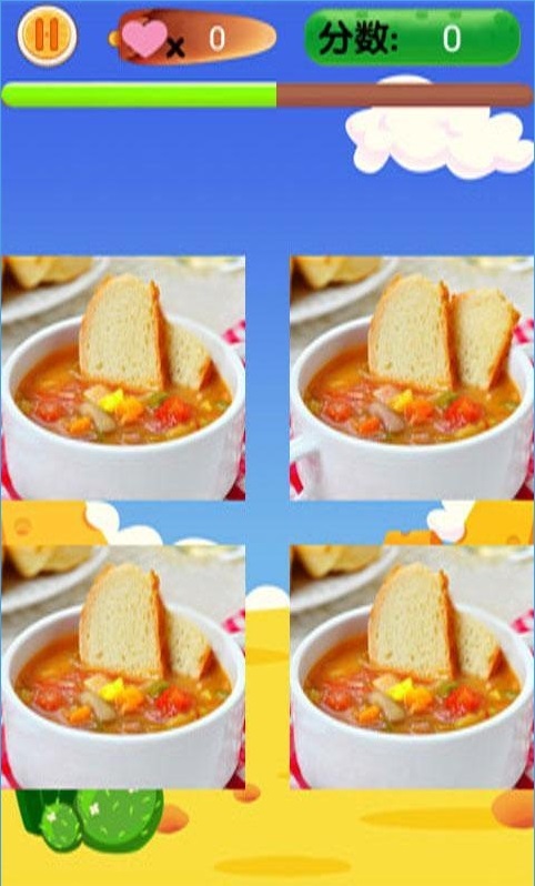 累瞎吃货游戏手机安卓版是一款风格十分简约的美食找茬类别的休闲游戏。游戏画面十分清新,众多美食更是让人欲望大增,你需要在有限的时间内找出不同图片的一项,难度不低,赶紧试试吧。