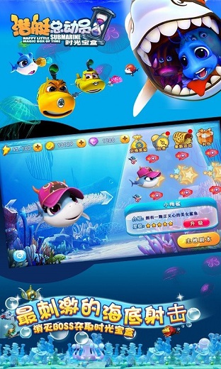 《潜艇总动员》是一款根据大电影改编的免费的横向射击类游戏,游戏中与您一起海底大冒险! 大家将化身不同角色,在海底中穿梭历险,目的是帮助小梅鲨,寻回稀世珍宝「时光宝盒」,让变成小孩的爸爸独眼鲨回复原状。