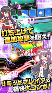 只要透过简单的图示点击操作,就能操作机械娘们展开三对三的超华丽战斗,机械娘们将会使用各种武器与技能来展开攻势挑战强敌,而且一旦画面上的能量槽全满,还可以发动“Limit Break”极限必杀技,让画面上的全体机娘们同时展开攻击,给予敌人重创、逆转战局!