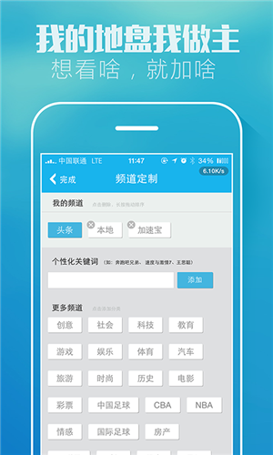 自定义新闻:新闻分类可以自定义关键词,关注你所关注的。