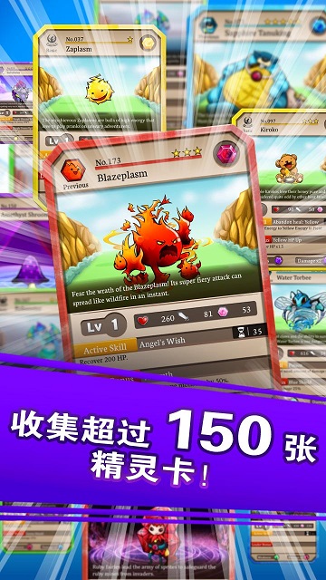 游戏中的宝石主要分为火、水、自然、光明、黑暗以及回复等六种不同的宝石,除了回复宝石之外,只要我们连结的宝石属性与队伍中怪物的属性相同的话,就可以产生共鸣并进行攻击。当然游戏中的精灵也可以透过各种方式来捕捉、召唤、升级或进化!
