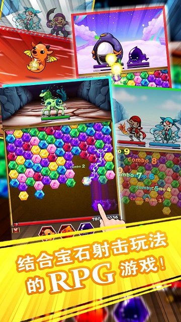 《魔法小精灵大冒险(Magimon Adventures)》是一款动感十足、结合角色扮演及宝石射击玩法的休闲游戏,进入怪物与驯兽师的奇妙世界。游戏玩法类似泡泡龙,从屏幕下方将会出现各种不同颜色的宝石,你要将那些宝石射到屏幕上方的宝石堆,只要连结3颗以上同色的宝石,你驯服的怪物就会造成伤害或进行治疗。你可以融合怪物和它们升级并提高统计数据,或者利用稀有物品加以进化,释放它们的全部潜能。