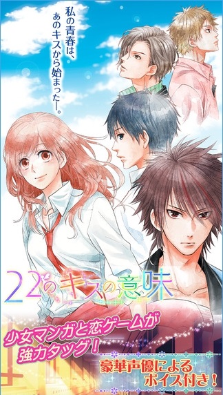 22种接吻的意义(22のキスの意味)是由旗下曾经推出过《花样男子》,《好想告诉你》,《闪烁的爱情》等人气专业户女性游戏大户D3PUBLISHER(D3P)和集英社的跨界合作女性向手机游戏,游戏中将扮演一名就读于「美空第一高校」,过着普通生活的主人公,在新学期之际,因为隔壁的高校「日凜草学园」需要建新校舍,暂时要借用自己学校上课,就这样,女主角的平凡生活发生了改变。