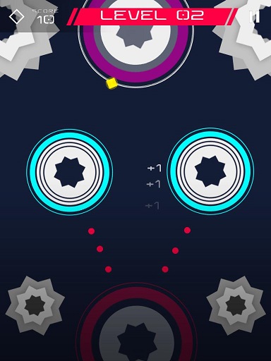 无尽旋转是一款玩法独特,有趣又有挑战性的休闲益智手游,游戏中玩家需要帮助小黄点在旋转的圆圈之剑跳跃,小心不要碰到墙壁,需要你有快速的反应能力与节奏感,你能坚持多久??