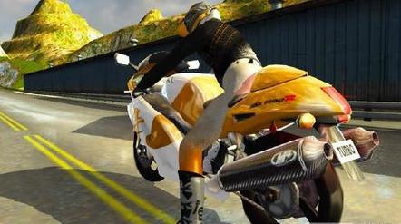 重力感应控制摩托车的方向,屏幕左下角控制油门和刹车,要非常注意转弯的时候控制好摩托车的方向,因为速度比较快就容易撞到道路旁边的护栏或者岩石峭壁。加油,相信你可以坚持很久的!