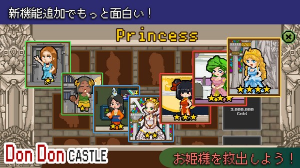 《唐唐城堡》(DonDonCastle)是经典的像素绘风格游戏,攻略被怪兽们侵占的城堡。通过人物追加强化、队列编成得到的特殊效果、运用技能和攻击,有战略地与怪兽们战斗时很必要的哦。
