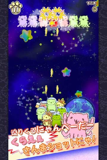 《猫猫大危机》是一款画面感十足的射击游戏,游戏舞台已冲出地球,来到宇宙了!玩家要和猫猫们一起在太空飞行,在游戏中玩家需要保卫自己的猫咪团队,对吃货们进行射击游戏。玩法与一般打飞机游戏相同,不过武器却从子弹变成了三文鱼了。