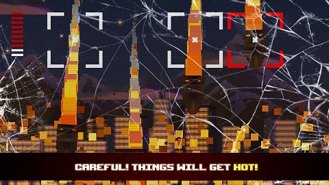 游戏过程中屏幕中会不定时不定位的出现一些方框,这些方框就是玩家的目标,在方框变成红色的时候准确点击即可提前致使导弹炸毁,在空中炸毁的导弹就伤害不了下方的城市啦,虽然听起来简单,但是杂乱无章的方框分布,一旦多起来就手忙脚乱了,还容易踩不到点上。右上方的能量条代表城市的血量,血槽空了就守卫失败啦,不过血槽量可以通过连续的成功点击补满~