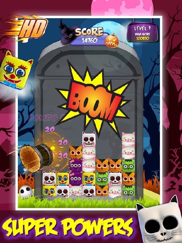 游戏定位是一款消除游戏,但是消除的方式却是泛滥的消除游戏里比较新颖罕见的。玩家只能拖动没有被挡住的猫,并在合适的地方丢下它,以此来消除相同打扮的猫,同时上面不时的会落下一些猫咪来骚扰玩家。游戏里猫咪们千奇百怪的打扮是本作的一大亮点,不同于以往的萌系形象,该作中猫咪们全都是一副万圣节的打扮,难怪叫做 Bad Cats 了。