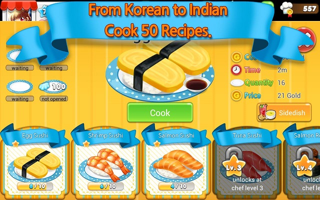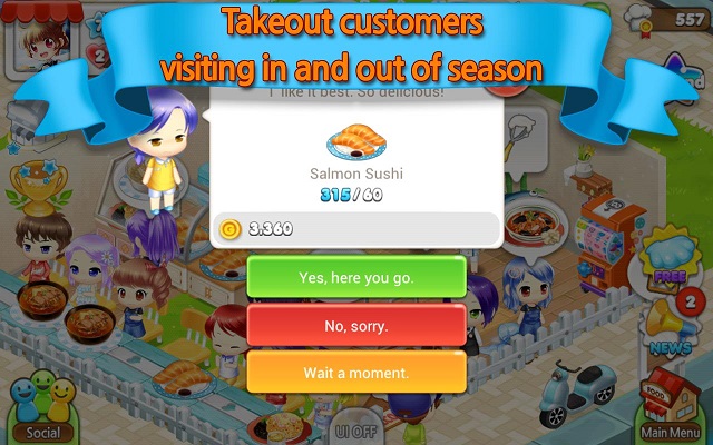 游戏中你需要烹饪传统和创新菜式,满足顾客味蕾,收集并使用新鲜健康的原料学习制作菜肴,学习新的菜式以提供更丰富的菜式,并引入各种新鲜,美味的口味!扩大经营,与新的食品杂货商见面……你会如何设计运营这家新开张的餐厅呢?