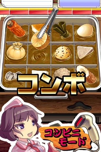 关东煮会在锅内浮沉不定、要看准时机夹起来的「便利店模式」。如果记住了沉下去的关东煮一下子串起两件的话就能发生COMBO。持续COMBO就能进入“钓锅机会”,唰唰唰地就能获得大量的关东煮,来挑战一下看自己能夹多少关东煮吧!!