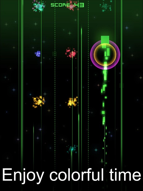 彩虹跑(COLOURUN)是一款节奏感十足,画面无比劲爆的游戏。游戏里躲避是玩法,色彩是主角。玩家的舞台是三条笔直的跑道,跑道上那颗不断飞翔的“长尾巴彗星”就是我们要控制的对象。随着“彗星”不断向画面上方飞行,一些横向的拦路障碍会出现,这时大家需要点击屏幕左右闪避这些障碍,如果一头撞上去自然是游戏结束。