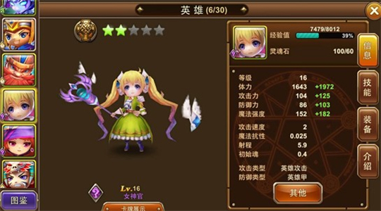 英雄搭配,尽30种英雄小兵助阵,另外增加了一键上阵平衡整场战斗。战斗中,依靠精魂的积累来释放小兵,已经英雄的特殊技能,抵抗Boos的进攻。