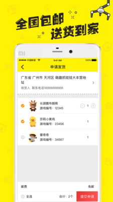 抓中的娃娃,我们为你送到家;两个或以上的娃娃,包邮寄到指定地址;当然,一个也是可以发货的;如不想发货,还可以选择兑币继续抓。