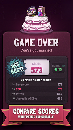 游戏虽小但五脏俱全——你可以用炸弹、地雷、吸铁石和重置四种道具来帮助你完成过关任务;游戏的场景拥有轻微的逻辑线——你首先从教堂开始逃跑,然后是花园、街道、机场、机舱内……分别躲避牧师、姑妈、保安、警察、飞机驾驶员等不同逼你就范婚姻的人的追逐;游戏也有排行榜和内购。