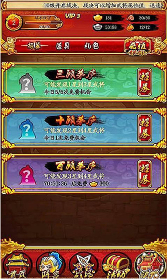 《斗战三国》是一款以三国经典历史为题材的RPG类卡牌手游,在经典卡牌玩法基础上融入精彩的剧情元素,加以丰富的副本模式挑战,使游戏趣味性更强,玩家在游戏中将带领军队开启三国巅峰之战,你准备好了吗?