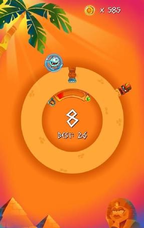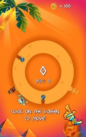 《木乃伊快跑(Mummy Runner)》是一款创意满满的跑酷游戏。我们主角的跑酷场景只有一个,就是不断钻出陷阱的圆环,而且你躲开它们的方式也很简单,轻轻拖动手指让它跳到另一边就行了。