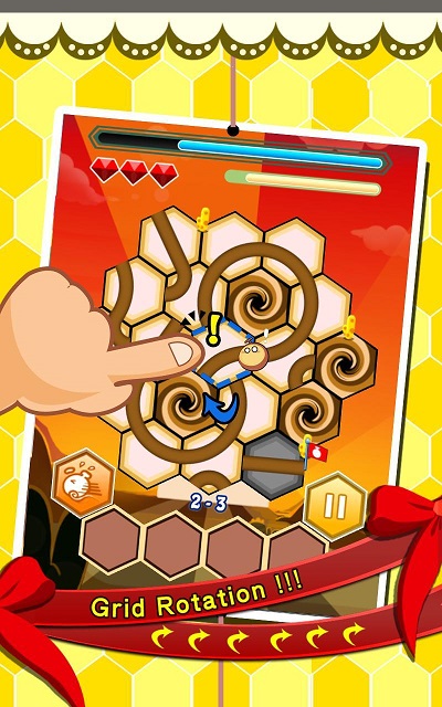 《转转美乐(Turning Melo)》是一款趣味小游戏,游戏中丰富而具有挑战性的关卡适合所有玩家,只要动动手指,就能够随心所欲的转动六角格,帮美乐组合出正确的道路。玩家在努力向终点前进的同时,也别忘了努力收集红宝石。