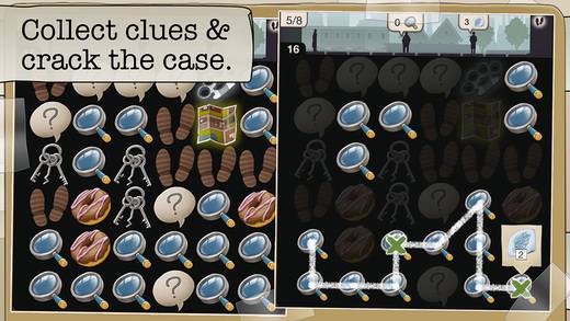 在游戏中你将作为一名有理想有抱负有担当的小侦探,你每天的工作很简单,就是接受来自五湖四海的各种委托。这些委托千奇百怪,有的是要你寻找失物,有的则是需要你寻找小偷等等。每一个案件你需要走访案发现场的目击者或者附近的人来获取情报,你每次走访的人数还不相同,他们会提示你消除 N 个元素来获取所需的情报。值得一提的是,这里的消除玩法比较自由,只要不重复划线,那么横着竖着斜着画都是允许的,务必做到所连数量最大化,这样才能快速得到所需要的资料。