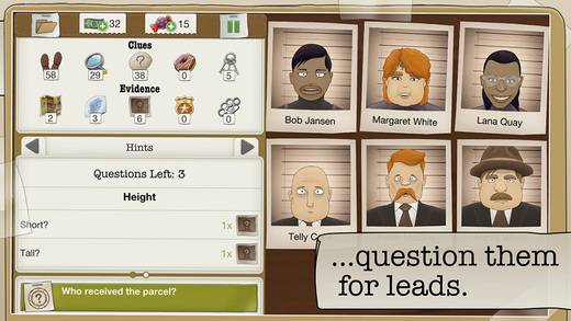 你别以为访问跟消除后就能解决案件了,这个时候你只是完成了任务的一小半。接下来需要你从相关的 6 个人中判断出谁是真正的凶手,而让你最接近真相的方法就是通过消除环节获得的照片道具可以得到一些提示,例如犯人是高是矮,有无戴眼镜,鼻子大小等外貌特征,收集的照片越多,那么相应能够得到的提示就越多,真相只有一个!(柯南脸)
