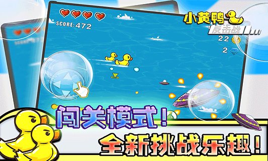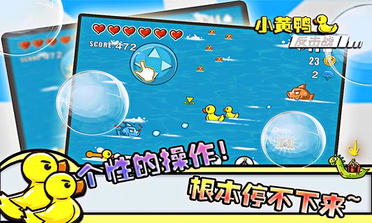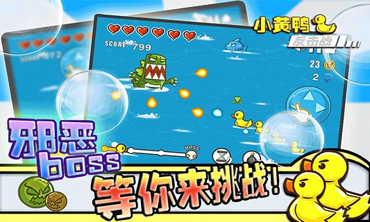 《小黄鸭反击战》是一款趣味十足的射击类休闲游戏,游戏中玩家将帮助小黄鸭找回自己的孩子,而途中你将遭遇强大的敌人们,那么就开始反击吧!精致高清的游戏画面,卡通趣味的画风,简单有趣的游戏玩法,还融入趣味剧情,那就赶紧加入赢得战斗吧!