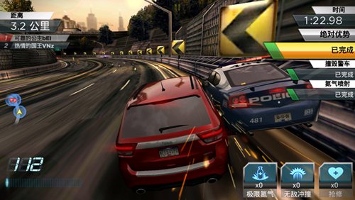 《极品飞车2015》采用重力感应加一键漂移的操作方式。玩家只需按住屏幕左侧,倾斜手机就可完成高难度的漂移动作。面对复杂的S型弯,U型弯,极速漂过,将追缉警车远远甩在身后。