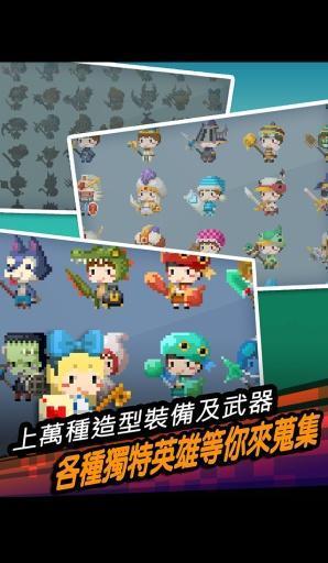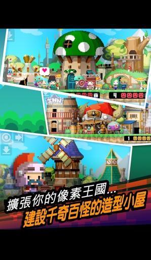 游戏的画面风格颇有些当年红白机的感觉,虽然以像素元素构成,但是整体画面元素丰富,色彩很鲜艳。游戏的元素布局以横版为主,画面下拉则是地下城副本供玩家刷怪练级。通过逐步的经营,玩家可以通过消耗金币解锁更深层的地下城以解决更高需求的副本。合理的利用了画面的空间而不用做跳转页面,这个设计提高了玩家的效率。