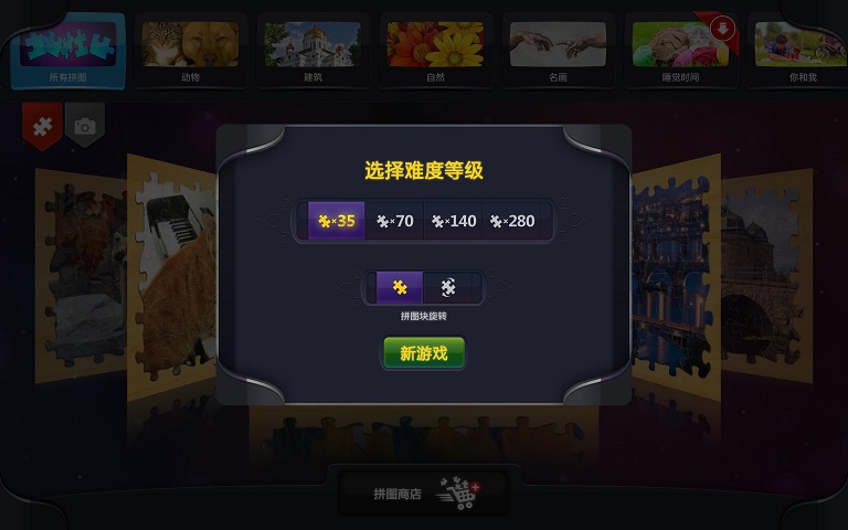 魔法拼图是一款拥有数百张精美照片的拼图手游,玩家可以自由调节游戏的难度,拼图的碎片数量,是否旋转等,更有美妙音乐陪你度过拼图时光。