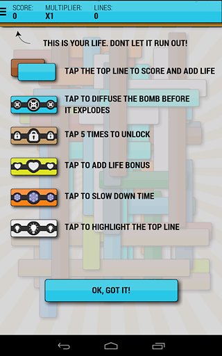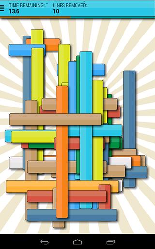 《该死的线》是一款无止境的休闲游戏,画面色彩丰富,和小时候玩的‘挑棍’一样。玩家要集中注意力,点击最上面的一根消除。慢慢来吧,游戏会无限随机生成下面的棍子布局。上方有时间计时条,一旦点错棍子会扣除剩余时间,点对了相应增加,一起来创造高分吧!