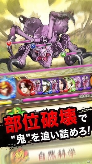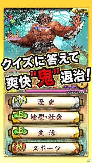 解谜战斗:讨鬼传(クイズバトル討鬼伝)是一款冒险解谜类RPG游戏。玩家要以回答“地理”“生活”“运动”相关问题的方式击倒强大的“鬼”,个性丰富的日本历史名人们,将以“御魂”的形态与玩家并肩作战。在《讨鬼传》系列中出现的人气角色们也将悉数登场,全力收集并加以强化吧!