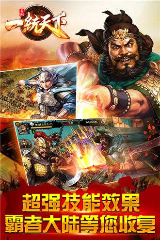 国战,身临其境——《一统天下》分为魏、蜀、吴三个国家势力,真实还原地形版图,烽火狼烟,战火连天,让您身临其境,杀敌百万,做真正的无双上将!
