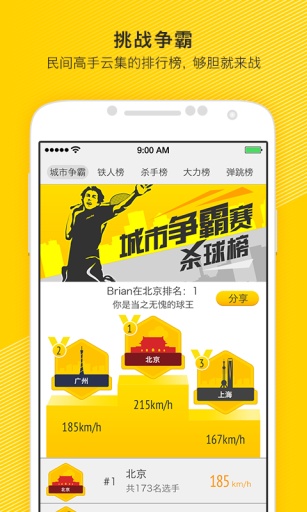 球场上的拼搏少不了与球友的竞技,莫比YY帮球友做了城市争霸赛和个人成绩大排名,球友排名也是英雄榜的分享,羽球场上,每一个运动员都是排名厮杀的英雄,等你来战!