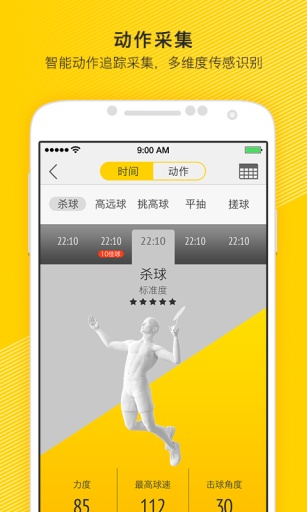 精确的记录你在球场打球的全过程数据,通过手机app可以查看全面的运动参数和体能参数,如击球类型(高远球,杀球,平抽球,网前球,挑球等),击球角度,击球力度,起跳次数,跑步距离,卡路里消耗等等。