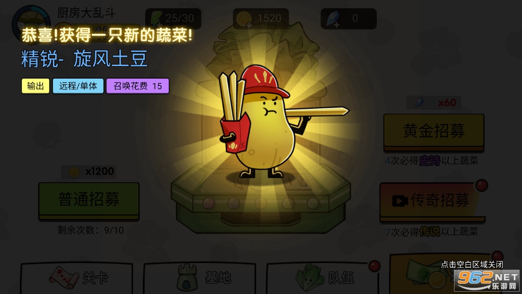 3、不同的蔬菜有不同的技能,玩家只能通过点击来制作更多的食物,玩家才能逐渐解放双手。