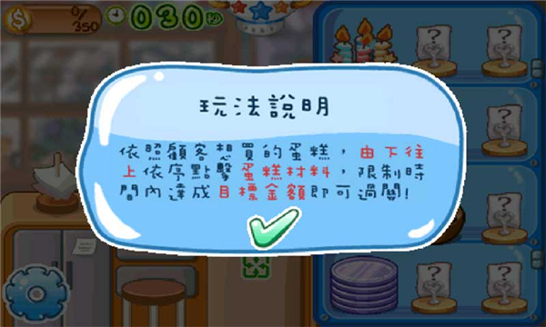 只要依照女孩们的要求以各种材料做出正确的蛋糕,就能让她心满意足喔!发挥触控手机操作特性,画面精致可爱有趣,绝对是让你放松减压的最佳游戏唷!