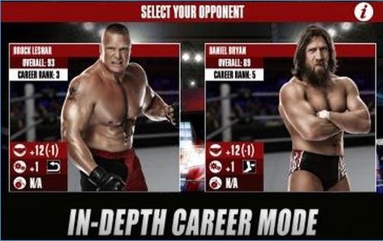 职业摔角联盟2K中文汉化安卓版(WWE 2K)是一款高品质的体育竞技类手机游戏,游戏与真实的 WWE 比赛打法完全不一样,而是把联盟中的超级明星集中起来,重新打造一个奇幻的格斗世界,欢迎体验!